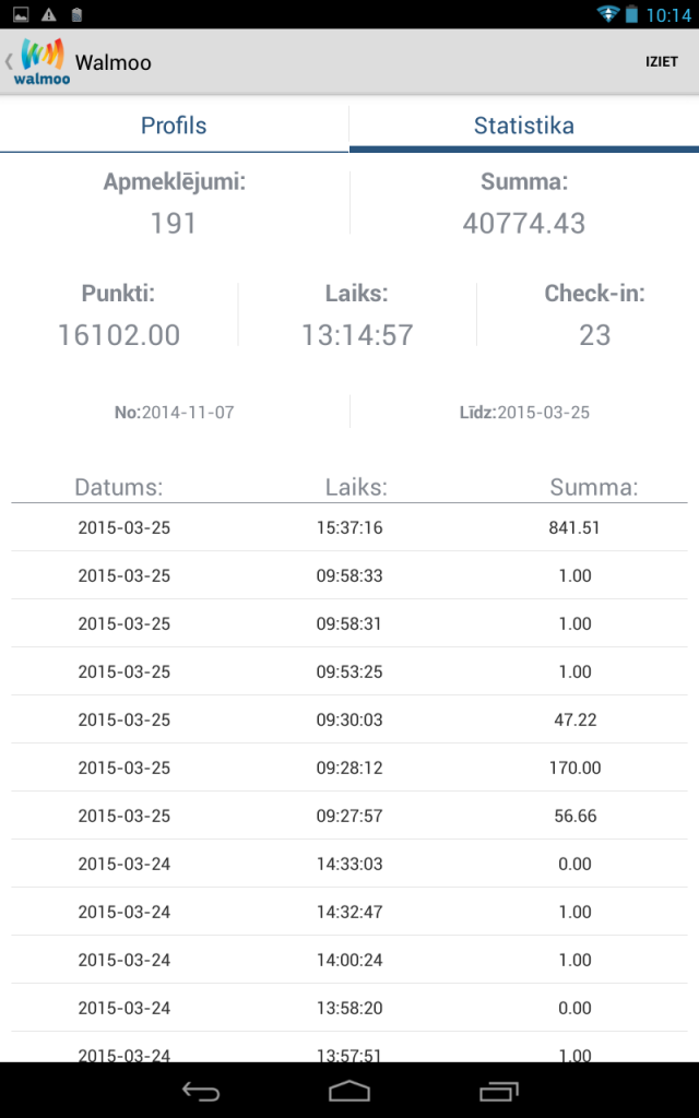 Pēc klientu pieprasījuma, mēs esam piestrādājuši pie vairākiem nozīmīgiem uzlabojumiem. Šoreiz runāsim par biznesa mobilo aplikāciju Walmoo Terminal. Tagad arī Walmoo Android un PC terminālos ir pieejama visa informācija par klientu – pilna profila informācija + bilde, komentāru sadaļa (par šo plašāk pastāstīts nedaudz zemāk), kā arī visa klienta statistika par apmeklējuma skaitu, pirkumiem (summām), apmeklējumu laikiem utt. Tas vēl vairāk atvieglos ikdienu un ļaus ieskatīties, saprast un analizēt klienta vēlmes un paradumus, veicot uzlabojumus apkalpošanas kvalitātē.